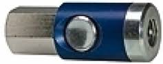 Die universelle Einhand-Schnellverschlusskupplung in einseitig absperrender Ausführung für eine Vielzahl von Anwendungs- und Einsatzmöglichkeiten. Durch die geschlossene Verriegelungshülse wird ein Verschmutzen der Innenteile verhindert. Bei Verwendung von Stahlnippeln kann dies Kupplung aufgrund ihrer gehärteten Verriegelungsstifte auch an Druckluftwerkzeugen verwendet werden.
