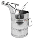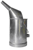 Messeimer aus Weißblech mit Tragebügel, Handgriff und Trichterauslauf für ein ergonomisches Handling. |