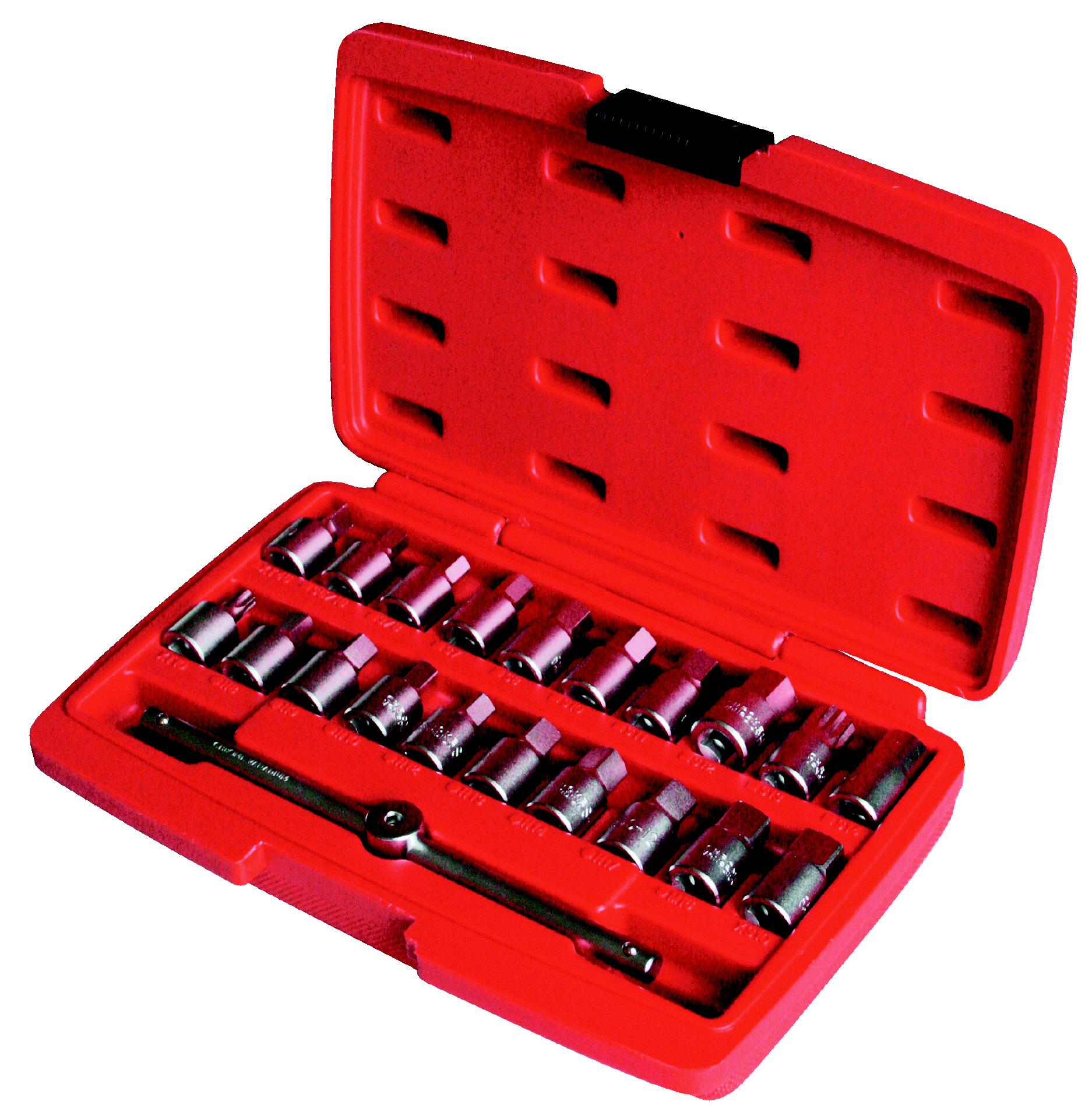 Universal-Ölschraubenschlüssel mit 4 x Vierkant-Einsätzen 8; 10mm / 3/8"; 1/2" und 4 x Sechskant-Einsätze 8; 12; 14; 17 mm |