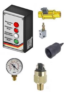 Elektrische Steuereinheit für pneumatische bzw. elektrische Absaugeinheiten. Anlage wird über die Ein-Taste in betrieb genommen und ein Unterdruck-Schalter steuert den Saugvorgang, gemeinsam mit dem Vakuummeter. Bei Unterdruckabfall / kein Ölmedium mehr vorhanden / stellt sich automatisch die konfigurierbare Nachlaufzeit ein, um ein Leersaugen des Saugschlauches zu erreichen und stellt die Anlage nach erreichen der Endzeit ab. Bei den pneumatischen Einheiten wird ein Magnetventil, welches den Luftfluss steuert, abgeschaltet und bei den elektrischen Einheiten wird die Saugpumpe direkt angesteuert. Der entsprechende Status der Anlage wird über Leuchtmelder signalisiert. Inklusive Not-Stop-Taste |