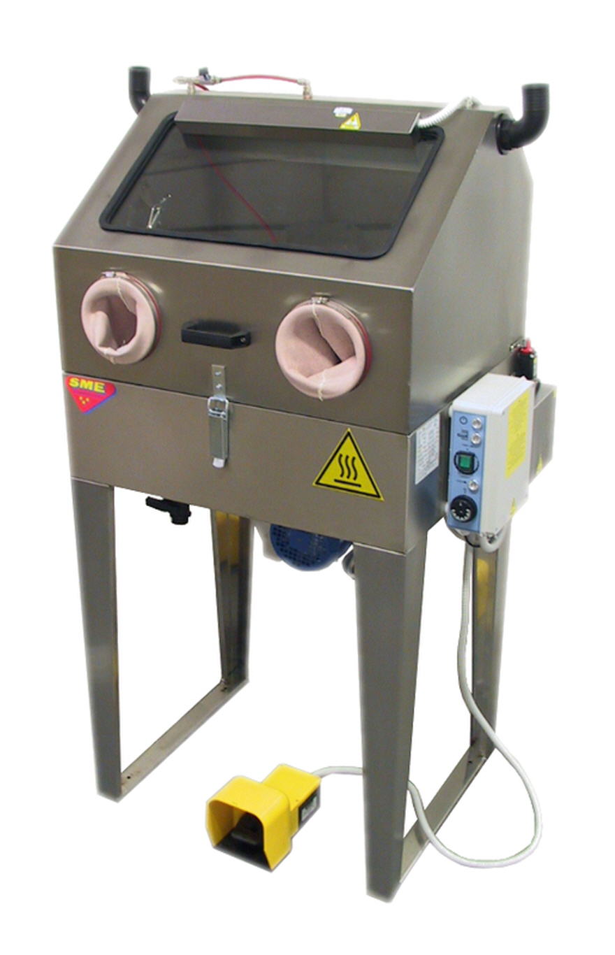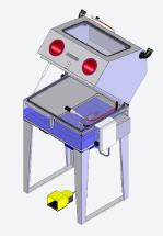 Die Behandlung erfolgt manuell durch zwei in die Frontpartie fest angebrachte Handschuhsysteme. Eine Hochdruckpumpe und eine spezielle Sprühpistole garantieren eine effiziente Reinigung. Die Pistole läßt sich durch Schnellanschlüsse im Handumdrehen gegen den Klassischen Reinigungspinsel austauschen.